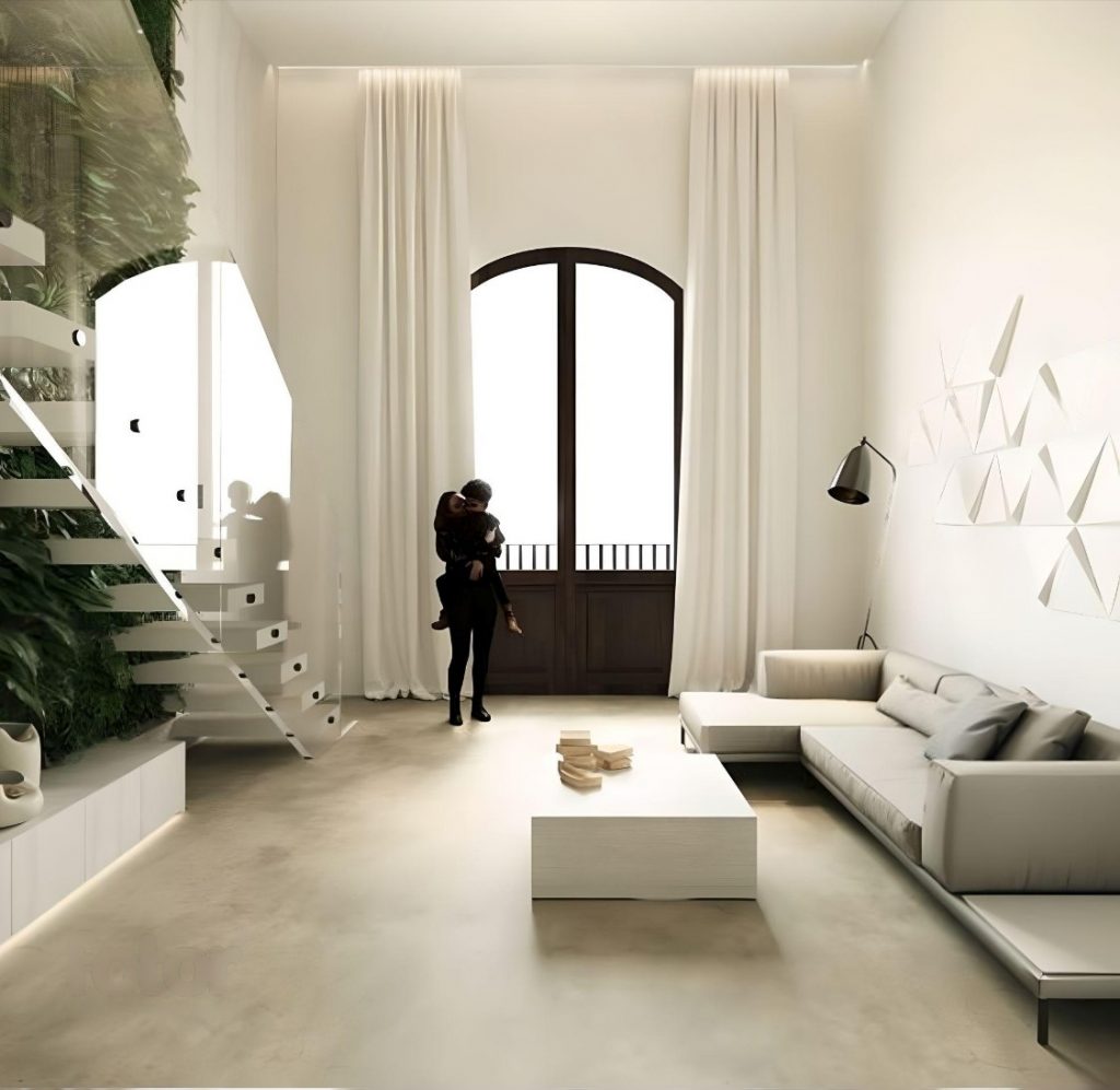El proyecto consiste en una reforma integral de una vivienda en el centro de Granada. Como idea generadora de proyecto, se busca la conexión de estancias y que el espacio respire, aprovechando la doble altura existente.